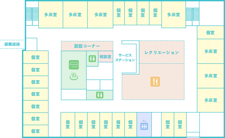 入所者の状況を確認する見回り業務を効率化し、医療、介護サービスの充実を図り、利用者のプライバシーの保護と安心で快適な療養環境を提供します。